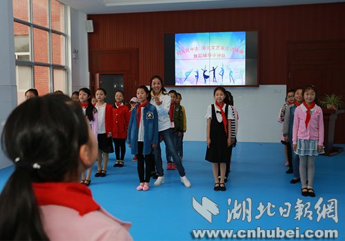 文藝志愿者在堯治河小學(xué)手把手舞蹈教學(xué)。記者 劉濤攝