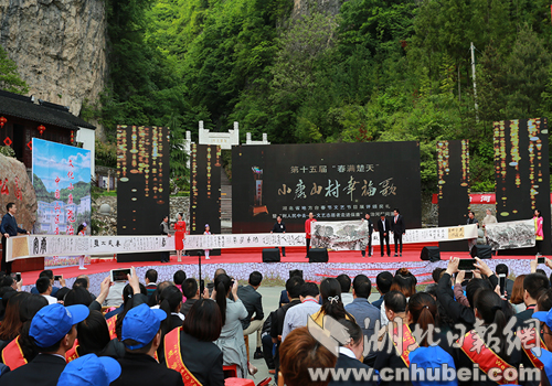 當(dāng)天上午,第十五屆“春滿楚天”湖北省地方臺春節(jié)文藝節(jié)目展評頒獎禮暨“到人民中去——藝術(shù)家走進(jìn)??怠蔽乃囍驹阜?wù)活動的新聞發(fā)布會,在??悼h馬橋鎮(zhèn)的堯治河村舉行。堯治河村從一個貧困的小山村,發(fā)展為如今的??凳赘淮?,也成為保康縣各村鄉(xiāng)親學(xué)習(xí)的榜樣。