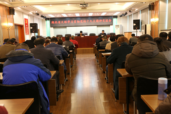 對于下一步省文聯(lián)如何繼續(xù)學(xué)習(xí)貫徹好黨的十九大精神和習(xí)近平新時代中國特色社會主義思想,鄧長青提出,一要提高政治站位,牢固樹立“四個意識”。學(xué)習(xí)貫徹黨的十九大精神是我們當(dāng)前和今后一個時期的首要政治任務(wù),要在學(xué)懂弄通做實上下功夫,既要組織黨員干部深入學(xué)習(xí)黨的十九大報告、黨章和《習(xí)近平談治國理政》(卷一、卷二),深刻領(lǐng)會十九大精神的精髓要義,同時要及時傳達(dá)學(xué)習(xí)中央重要會議和習(xí)總書記一系列的講話精神,深入理解和貫徹黨中央推進(jìn)全面從嚴(yán)治黨的決策部署,牢固樹立“四個意識”,堅定“四個自信”,堅決維護(hù)習(xí)近平總書記在黨中央和全黨的核心地位,堅決維護(hù)黨中央權(quán)威和集中統(tǒng)一領(lǐng)導(dǎo),自覺在思想上政治上行動上同以習(xí)近平同志為核心的黨中央保持高度一致。二要將學(xué)習(xí)貫徹十九大精神與實際工作結(jié)合起來。文聯(lián)要利用好文藝資源,利用文藝的形式貫徹十九大精神。文聯(lián)黨員干部和各文藝家協(xié)會要深入學(xué)習(xí)和思考十九大中關(guān)于“繁榮和發(fā)展社會主義文藝”的重要論述以及習(xí)總書記在北京文藝工作座談會、全國十次文代會上講話精神,大力推進(jìn)文聯(lián)自身改革創(chuàng)新,盡力為廣大文藝家和文藝工作者服好務(wù),團(tuán)結(jié)和引導(dǎo)他們堅持以人民為中心的創(chuàng)作導(dǎo)向,堅持“深入生活、扎根人民”,多開展現(xiàn)實題材的文藝創(chuàng)作,繼續(xù)組織開展文藝志愿服務(wù)活動。三要落實好全面從嚴(yán)治黨要求,進(jìn)一步轉(zhuǎn)變作風(fēng)。文聯(lián)作為黨領(lǐng)導(dǎo)下的群團(tuán)機(jī)關(guān),要按照中央和省委的安排部署,緊扣中心工作落實好全面從嚴(yán)治黨責(zé)任。要進(jìn)一步加強(qiáng)機(jī)關(guān)黨的建設(shè),推動新時代機(jī)關(guān)黨建創(chuàng)新發(fā)展。以加強(qiáng)支部建設(shè)為重要抓手,夯實基層基礎(chǔ),進(jìn)一步提升基層組織力、凝聚力和戰(zhàn)斗力。要按照習(xí)總書記關(guān)于進(jìn)一步糾正“四風(fēng)”加強(qiáng)作風(fēng)建設(shè)的重要批示精神,加強(qiáng)機(jī)關(guān)作風(fēng)建設(shè),鍛造一支真抓實干、擔(dān)當(dāng)負(fù)責(zé)的黨員干部隊伍,為湖北文藝事業(yè)發(fā)展提供堅強(qiáng)的組織保障。