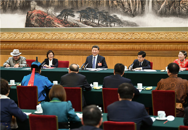 今年全國(guó)兩會(huì),從文化藝術(shù)界、社會(huì)科學(xué)界委員聯(lián)組會(huì),到內(nèi)蒙古代表團(tuán)、甘肅代表團(tuán)、河南代表團(tuán),習(xí)近平已經(jīng)四次“到團(tuán)組”。脫貧攻堅(jiān)“決不能搞急功近利、虛假政績(jī)的東西”,生態(tài)環(huán)境保護(hù)“不動(dòng)搖、不松勁、不開口子”,“艱苦奮斗、勤儉節(jié)約的思想永遠(yuǎn)不能丟”……五天四次“到團(tuán)組”,習(xí)近平留下5句“叮囑”。