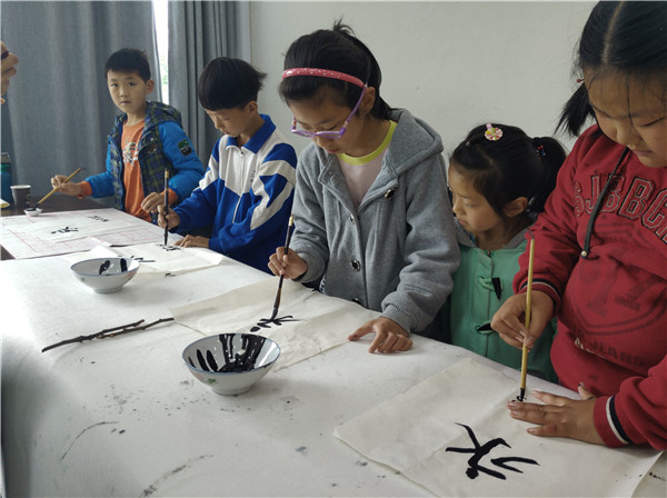 陳河村兒童現(xiàn)場(chǎng)學(xué)習(xí)書法