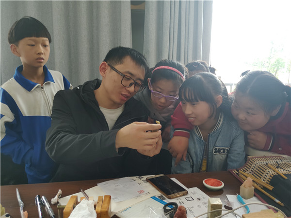 陳河村兒童現(xiàn)場(chǎng)學(xué)習(xí)篆刻