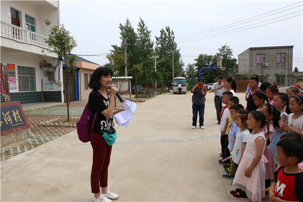 6月1日,陳河村村部廣場(chǎng)響起激昂的國(guó)歌聲,這里正在舉行升國(guó)旗儀式,省文聯(lián)愛心媽媽即將組織陳河村留守兒童開展趣味運(yùn)動(dòng)會(huì)。省文聯(lián)人事部主任周玲致辭并宣布運(yùn)動(dòng)會(huì)開幕。