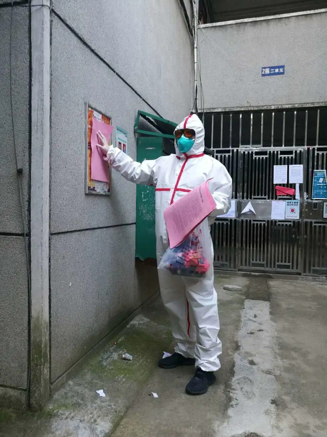 省文聯(lián)“黨員進(jìn)社區(qū)工作隊(duì)”隊(duì)員鄭毅在涂家?guī)X社區(qū)登記出入人員信息