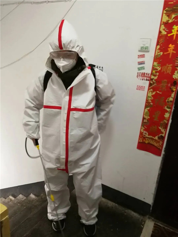 省文聯(lián)“黨員進(jìn)社區(qū)工作隊(duì)”隊(duì)員高志剛在涂家?guī)X社區(qū)進(jìn)行消殺