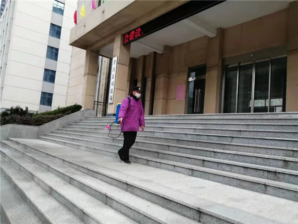 值班保安堅(jiān)持每日在辦公區(qū)、院內(nèi)公共區(qū)及住戶樓道地面“84消毒液”噴灑等工作,并保持公共區(qū)域的環(huán)境衛(wèi)生。