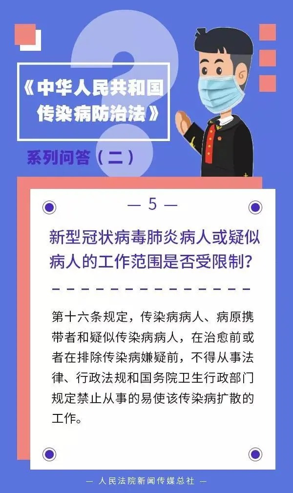 問(wèn)題五:新型冠狀病毒肺炎病人或疑似病人的工作范圍是否受限制?