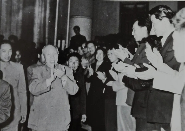 1962年4月30日,董必武副主席在武漢接見演員代表 (黃克勤 攝)