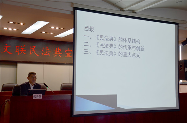 張善斌從“民法典的體系結(jié)構(gòu)”“民法典的傳承與創(chuàng)新”“民法典的重大意義”等三個方面,對《民法典》進行了全面、系統(tǒng)的梳理和解讀,重點從民法典各編介紹了民法典傳承與創(chuàng)新的內(nèi)容,講解過程中還分享了很多實際發(fā)生的案例,內(nèi)容豐富、講解生動、貼近實際,具有很強的理論性和指導(dǎo)性。