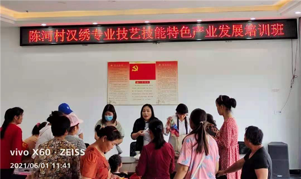 此次民間藝術(shù)家走進(jìn)陳河村學(xué)黨史、繡黨旗、慶“六一”活動(dòng)是湖北省文聯(lián)黨史學(xué)習(xí)教育“我為群眾辦實(shí)事”系列主題實(shí)踐活動(dòng)之一,旨在充分發(fā)揮省文聯(lián)自身優(yōu)勢(shì),將“文藝扶貧”不斷推向深入,讓陳河村村民初步了解傳統(tǒng)刺繡工藝,逐漸掌握刺繡技能,進(jìn)而推出具有當(dāng)?shù)靥厣拇汤C產(chǎn)品,為陳河村鄉(xiāng)村振興探索新路。