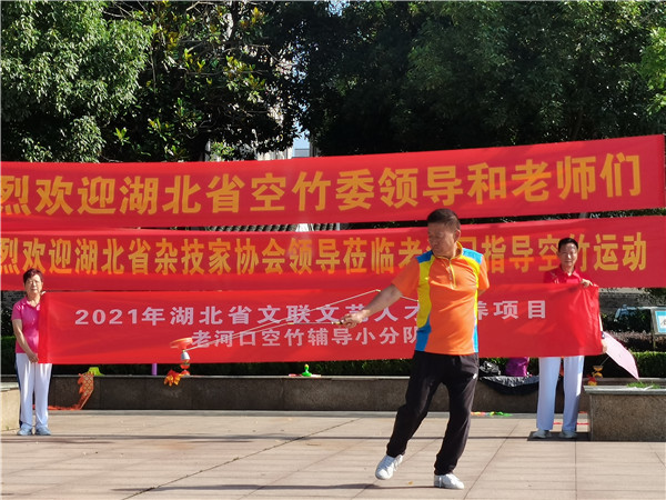 為了真正服務(wù)基層的文藝工作者,深入學(xué)習(xí)貫徹習(xí)近平總書記關(guān)于文藝工作一系列重要講話精神,全面提升湖北雜技藝術(shù)水平,培養(yǎng)一批優(yōu)秀的雜技(空竹)人才;結(jié)合2021年度省文聯(lián)文藝人才培養(yǎng)項目統(tǒng)籌安排,湖北省文聯(lián)文學(xué)藝術(shù)院、省雜協(xié)于2021年7、8月開展了“湖北省雜技(空竹)老河口輔導(dǎo)小分隊”和“湖北省浠水縣雜技輔導(dǎo)提高班”活動。