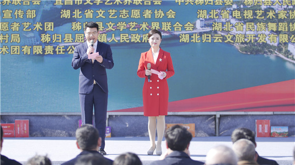本次活動(dòng)由湖北省文學(xué)藝術(shù)界聯(lián)合會(huì)、宜昌市文學(xué)藝術(shù)界聯(lián)合會(huì)、中共秭歸縣委、秭歸縣人民政府主辦,中共秭歸縣委宣傳部、湖北省文藝志愿者協(xié)會(huì)、湖北省電視藝術(shù)家協(xié)會(huì)承辦。現(xiàn)場(chǎng)32萬(wàn)網(wǎng)友和數(shù)百名當(dāng)?shù)卮迕裢ㄟ^(guò)線上線下觀看演出。