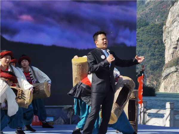 青年歌唱家金波帶來(lái)《常來(lái)常往》《愛(ài)家鄉(xiāng)》等歌曲并在演出中推介秭歸臍橙