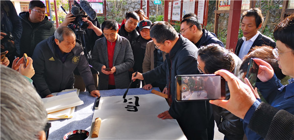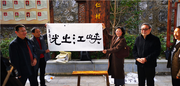 書(shū)法家們向當(dāng)?shù)刭?zèng)送書(shū)法作品