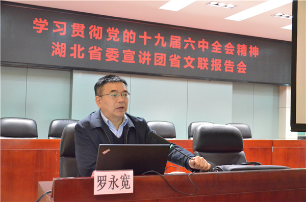 省委講師團(tuán)成員、武漢大學(xué)馬克思主義學(xué)院黨委書(shū)記、教授羅永寬同志作宣講報(bào)告
