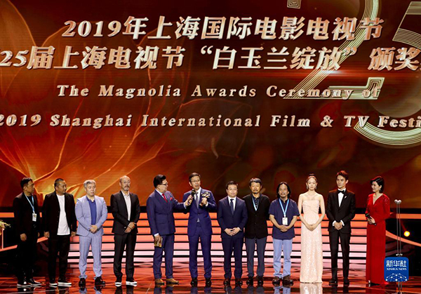 2019年6月14日,第25屆上海電視節(jié)落下帷幕,獲得“最佳中國電視劇”的《大江大河》主創(chuàng)上臺領(lǐng)獎。新華社記者 劉穎 攝