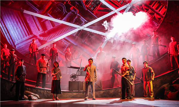 為紀念“八·七會議”召開95周年,喜迎黨的二十大勝利召開,武漢人民藝術劇院大型原創(chuàng)話劇《狂瀾》于2002年8月7日至9日在中南劇場上演。該劇以詩意的舞臺表達再現(xiàn)了1927年大革命失敗后,面對籠罩全國的白色恐怖,以毛澤東、瞿秋白、蔡和森、周恩來、鄧小平為代表的共產黨人在寒冷和漫長的黑夜艱難跋涉和篤定前行,他們正視殘酷現(xiàn)實,勇敢反思和糾正陳獨秀為代表的“右”傾錯誤,在武漢召開了我黨歷史上具有重大轉折意義的“八·七會議”,在黨和革命的危急關頭力挽狂瀾,在血與火的淬煉中高舉起土地革命和武裝斗爭兩面大旗,領導中國革命走向新階段。