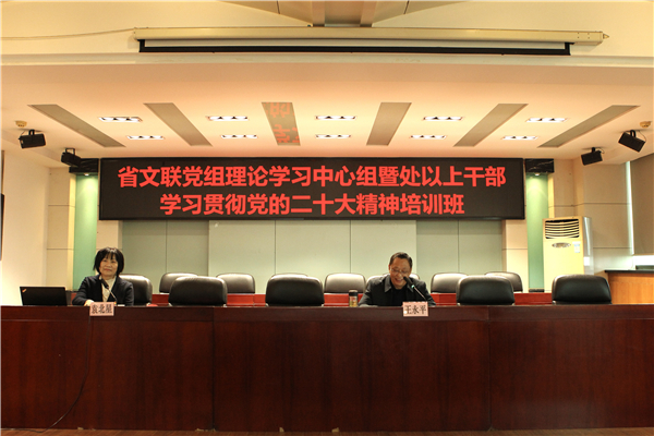 1月9日至13日,省文聯(lián)舉辦了為期5天的黨組理論學(xué)習(xí)中心組暨處級(jí)以上干部學(xué)習(xí)貫徹黨的二十大精神培訓(xùn)班。省文聯(lián)黨組成員,機(jī)關(guān)、協(xié)會(huì)、文學(xué)藝術(shù)院副處級(jí)以上干部,今古傳奇集團(tuán)各企業(yè)負(fù)責(zé)人參加培訓(xùn)。培訓(xùn)班采取集中授課、個(gè)人自學(xué)、觀看錄像、分組討論、研討交流等形式組織。