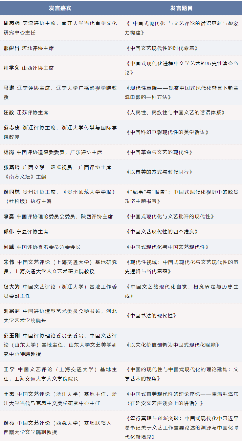 此次“中國式現(xiàn)代化與中國文藝現(xiàn)代性”主席論壇、2023年全國文藝評論工作會暨中國評協(xié)二屆四次理事會在邕召開,是我國文藝評論界的一大盛事,是廣西文藝戰(zhàn)線的莫大榮幸。希望各位專家多為廣西文藝事業(yè)把脈問診,為廣西文藝評論工作建言獻策。希望全區(qū)文藝評論工作者主動求教,不斷提高思想政治素質(zhì)和文藝?yán)碚撍仞B(yǎng),多出文質(zhì)兼美、社會效益顯著的文藝評論,增強戰(zhàn)斗力、說服力和影響力,為奮力譜寫中國式現(xiàn)代化廣西篇章、開啟全面建設(shè)新時代壯美廣西新局面貢獻文藝力量。