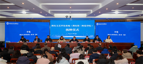 12月23日上午,湖北文藝評(píng)論基地(湖北第二師范學(xué)院)揭牌儀式暨新時(shí)代文藝評(píng)論建設(shè)與網(wǎng)絡(luò)文學(xué)高質(zhì)量發(fā)展研討會(huì)在湖北第二師范學(xué)院隆重舉行。湖北省文聯(lián)黨組成員、副主席李悅,湖北省作協(xié)黨組成員、副主席蔡家園,湖北第二師范學(xué)院黨委副書記胡興,湖北第二師范學(xué)院黨委常委、副校長(zhǎng)田恒平,湖北省文藝評(píng)論家協(xié)會(huì)副主席、武漢音樂學(xué)院教授李幼平,湖北省文藝評(píng)論家協(xié)會(huì)副主席、三峽大學(xué)文傳學(xué)院院長(zhǎng)劉波,中國(guó)作協(xié)網(wǎng)絡(luò)文學(xué)研究院研究員、安徽大學(xué)講席教授、中國(guó)文藝?yán)碚搶W(xué)會(huì)網(wǎng)絡(luò)文學(xué)分會(huì)副會(huì)長(zhǎng)馬季,中國(guó)作協(xié)網(wǎng)絡(luò)文學(xué)研究院副院長(zhǎng)、中國(guó)文藝?yán)碚搶W(xué)會(huì)網(wǎng)絡(luò)文學(xué)研究分會(huì)副會(huì)長(zhǎng)、杭州師范大學(xué)文化創(chuàng)意與傳媒學(xué)院教授夏烈,華中科技大學(xué)人文學(xué)院教授何錫章、李俊國(guó),華中師范大學(xué)文學(xué)院教授黎楊全,中南民族大學(xué)文學(xué)與傳播學(xué)院教授龔舉善,湖北第二師范學(xué)院科研處處長(zhǎng)肖明,湖北第二師范學(xué)院文學(xué)院黨總支書記庫(kù)文靜以及來自省內(nèi)高校、文藝期刊的部分專家學(xué)者代表出席揭牌儀式。湖北省文聯(lián)二級(jí)巡視員、湖北省文藝評(píng)論家協(xié)會(huì)駐會(huì)副主席李建華主持揭牌儀式。