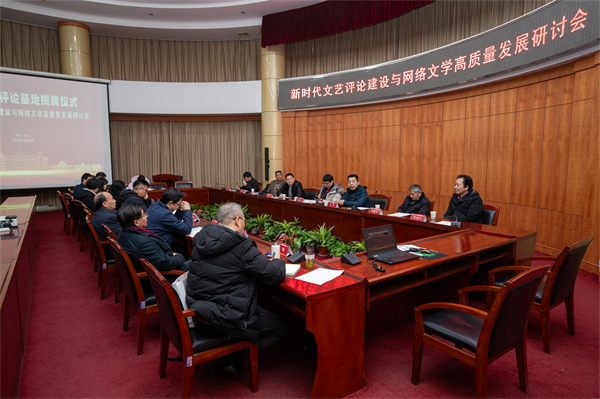 揭牌儀式后,基地邀請(qǐng)相關(guān)專家學(xué)者舉辦了新時(shí)代文藝評(píng)論建設(shè)與網(wǎng)絡(luò)文學(xué)高質(zhì)量發(fā)展研討會(huì)。與會(huì)專家基于跨學(xué)科融合和新時(shí)代新文科建設(shè)的視角,從網(wǎng)絡(luò)文學(xué)的發(fā)展歷程和網(wǎng)絡(luò)文藝評(píng)論現(xiàn)狀切入,圍繞網(wǎng)絡(luò)文藝和網(wǎng)絡(luò)文學(xué)的海外傳播和文化交流、黨的文藝政策對(duì)網(wǎng)絡(luò)文學(xué)創(chuàng)作題材的重大影響、網(wǎng)絡(luò)文學(xué)改編和地域樣本研究等問題作了深入探討交流,對(duì)推動(dòng)新時(shí)代網(wǎng)絡(luò)文藝的高質(zhì)量發(fā)展提供了很多有價(jià)值的建議和路徑探索。