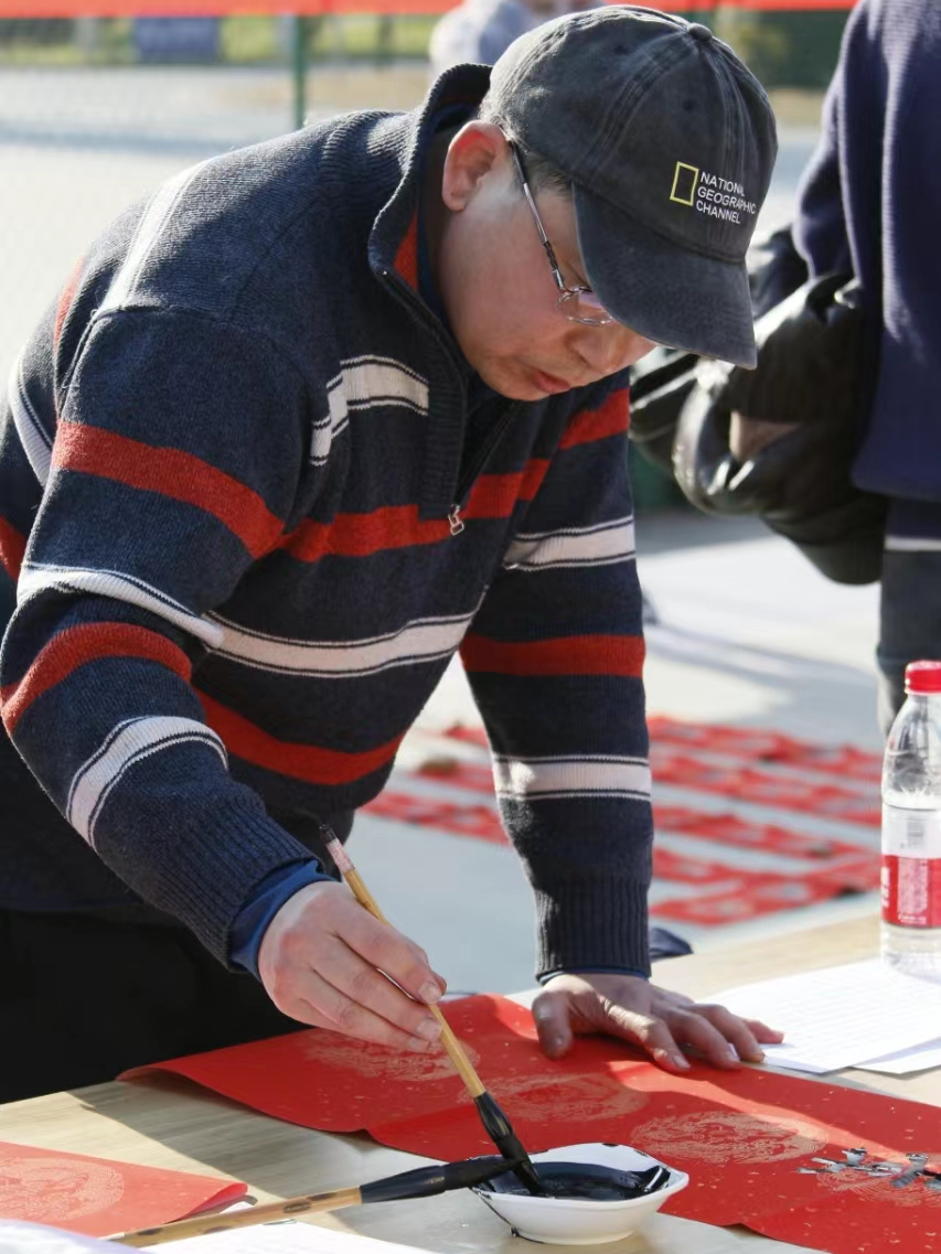據(jù)省文聯(lián)負責(zé)人介紹,每年元旦和春節(jié)期間,都會組織荊楚“紅色文藝輕騎兵”開展文藝惠民“六進”活動,深入廣大機關(guān)、學(xué)校、軍營、醫(yī)院、企業(yè)、社區(qū),把春聯(lián)送到家門口,把祝福送到百姓中,這次走進湖北大學(xué)陽邏校區(qū)是為了給教師職工及社區(qū)居民帶來慰問和關(guān)懷?!傲?xí)近平總書記的文化思想中提到,創(chuàng)作要深入生活、扎根人民,為人民而寫為人民而書。”陳明華表示,希望通過寫春聯(lián)這種方式送給大家美好的祝福,營造更好的春節(jié)氛圍。