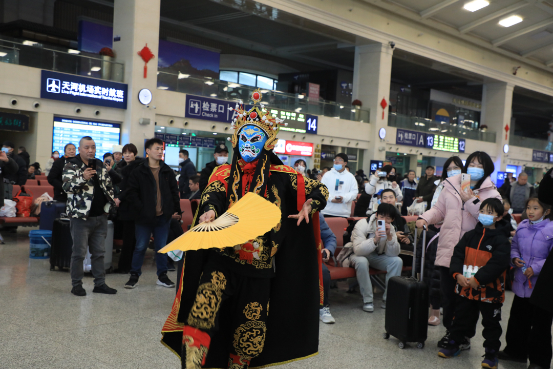 1月27日,在新春佳節(jié)來臨之際?!八腿f福進萬家 溫暖回家路”湖北省文聯(lián)荊楚“紅色文藝輕騎兵”文藝惠民系列活動在武漢市漢口站、武漢站、武昌站火熱開展,省文聯(lián)黨組成員、副主席王永平,省文聯(lián)黨組成員、秘書長張海旺,中國鐵路武漢局宣傳部副部長曾連平出席此次活動。