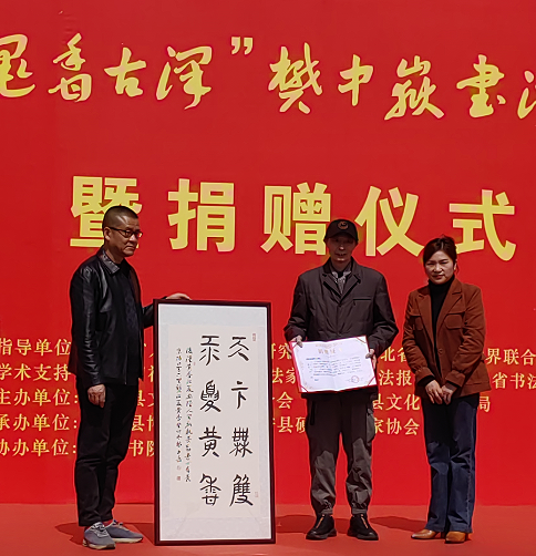 “這次展覽,我是把壓箱底的東西都拿出來了,就是想和大家一起分享這幾十年來我專注古文字和孝文化研究的一些成果,是想向云夢人民和各位藝術(shù)同道作一次匯報(bào),更期待大家對我的作品提出寶貴意見,我還要進(jìn)一步探索。我更要感恩藝術(shù)路上的各位師友親朋!”