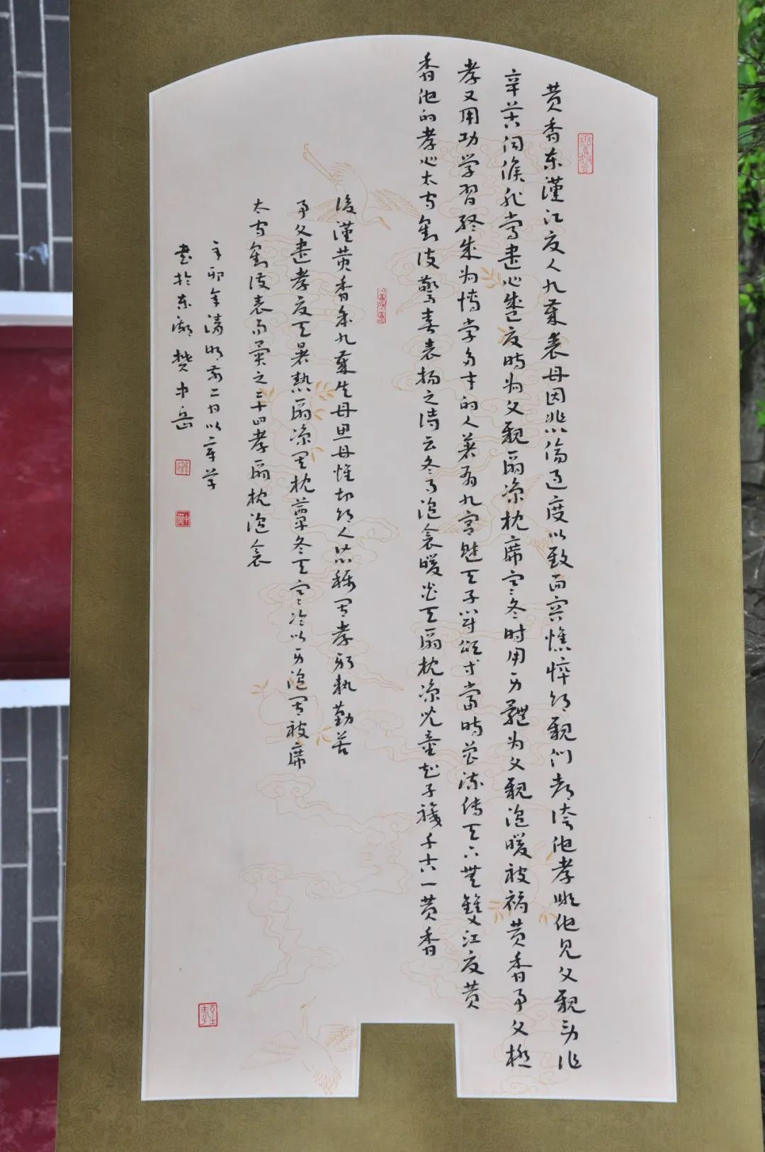展覽共分三個(gè)主要版塊:其一“孝行天下 福滿人間”,以楚金文和章草兩種形式書寫《二十四孝》作品25件,篆刻印章24方。同時(shí),還展示部分關(guān)于二十四孝的實(shí)物,通過書法作品等形式倡導(dǎo)孝道;其二“知來明去 文化傳承”,展出以二十四節(jié)氣詩為主題的楚金文作品24件,臨《蔡侯申盤銘文》四條屏1件,體現(xiàn)了作者追求蔡侯申意趣的楚金文作品風(fēng)格及高度;其三“眾妙攸歸 墨彩凝眸”,展出作者近年篆書、章草、篆刻作品30余件。其中古文字合文、十二生肖圖形文字及拓片題跋是作者學(xué)習(xí)研究后創(chuàng)作的作品,已有一定的研究成果。