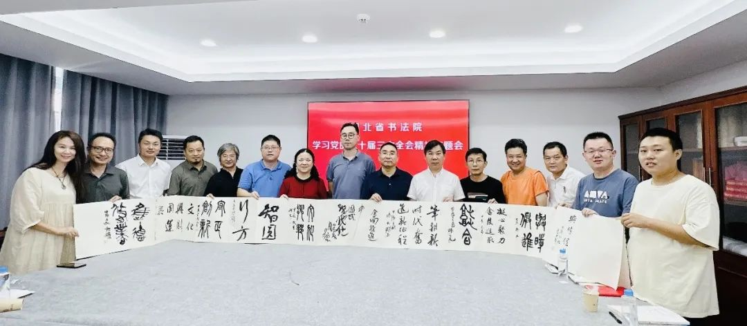 隨后,參會藝術(shù)家結(jié)合書法院工作和個(gè)人創(chuàng)作情況,逐一發(fā)表了學(xué)習(xí)黨的二十屆三中全會精神的心得與體會,一致認(rèn)為:堅(jiān)持擁護(hù)、學(xué)習(xí)黨的二十大和二十屆三中全會精神,推動湖北書法事業(yè)高質(zhì)量發(fā)展。要立足強(qiáng)國建設(shè)、民族復(fù)興的戰(zhàn)略高度,著眼賡續(xù)中華文脈、推動文化繁榮的重大使命,聚焦建設(shè)社會主義文化強(qiáng)國。三中全會提出深化文化體制機(jī)制改革重大任務(wù),明確改革路徑和具體舉措,為新時(shí)代新征程文化改革發(fā)展提供了根本遵循、指明了前進(jìn)方向。