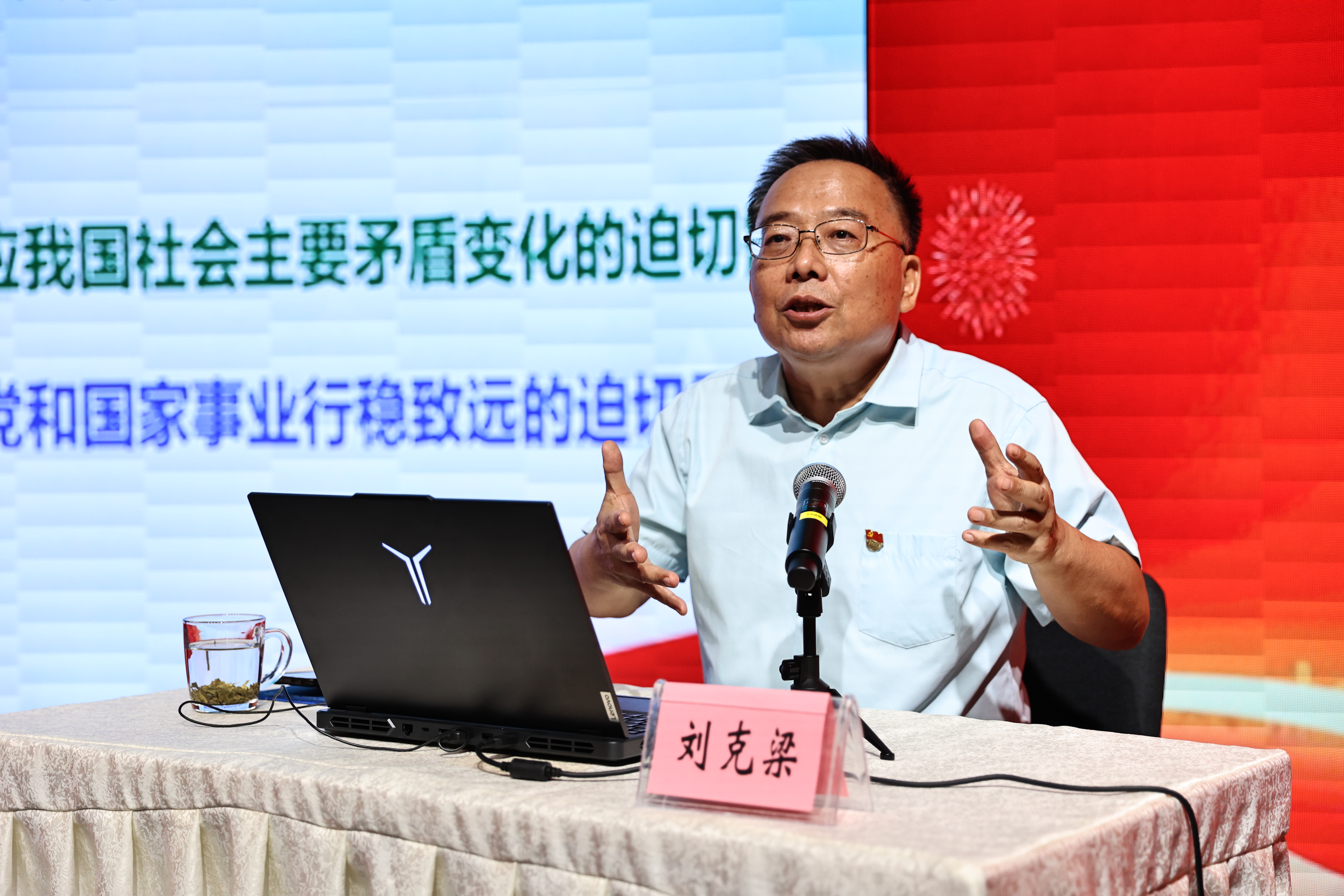 8月22日下午,宜昌市文聯(lián)召開(kāi)學(xué)習(xí)貫徹黨的二十屆三中全會(huì)精神報(bào)告會(huì),市文聯(lián)機(jī)關(guān)干部職工和退休黨員代表、宜昌文學(xué)藝術(shù)院(《三峽文學(xué)》雜志社)干部職工、市級(jí)文藝家協(xié)會(huì)負(fù)責(zé)人等30余人參加報(bào)告會(huì)。市委宣講團(tuán)成員劉克梁教授在報(bào)告會(huì)上作題為《新時(shí)代新征程全面深化改革的行動(dòng)綱領(lǐng)》的輔導(dǎo)報(bào)告,從深刻認(rèn)識(shí)全會(huì)的重大意義和鮮明主題、深刻把握決定的基本框架和創(chuàng)新要點(diǎn)、深刻理解全會(huì)的重要內(nèi)容和核心要義、學(xué)習(xí)貫徹全會(huì)的重要要求和基本方法等四個(gè)方面進(jìn)行了深入宣講和系統(tǒng)解讀。
