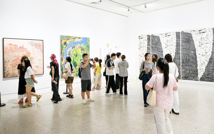 觀眾參觀“新象長(zhǎng)江”主題美術(shù)作品展