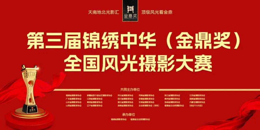 錦繡中華(金鼎獎)全國風光攝影大賽,是由福建省攝影家協(xié)會發(fā)起,近20個省市自治區(qū)攝影家協(xié)會共同主辦的全國性攝影大賽。大賽已成功舉辦兩屆,緊緊圍繞“錦繡中華”這一主題,引導攝影人以華夏各地美麗的自然風光、城市風光為藝術表現對象,展示祖國大好河山的獨特魅力,激發(fā)人們“青山綠水、愛我中華”的情懷,被譽為攝影界的“風光國展”。