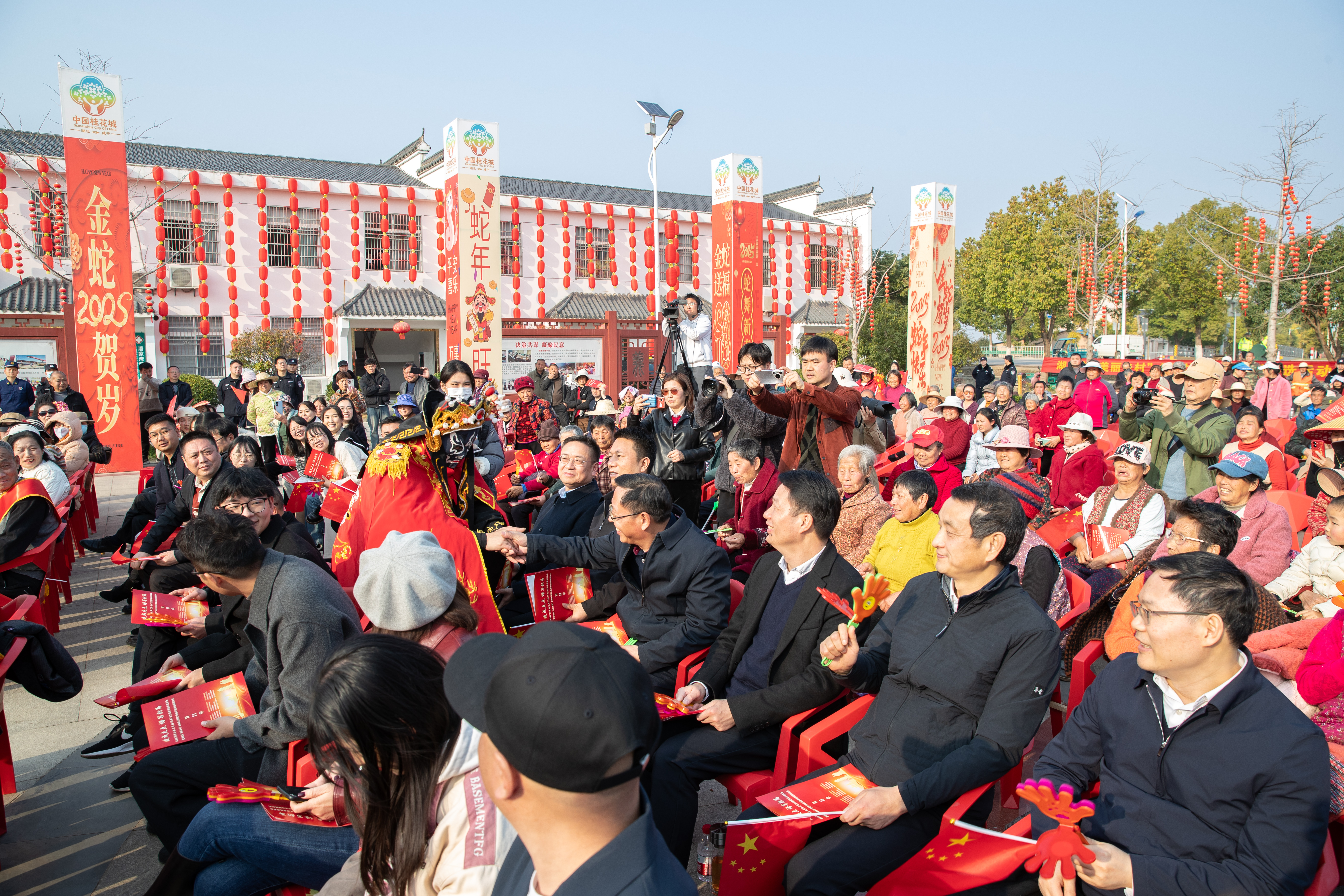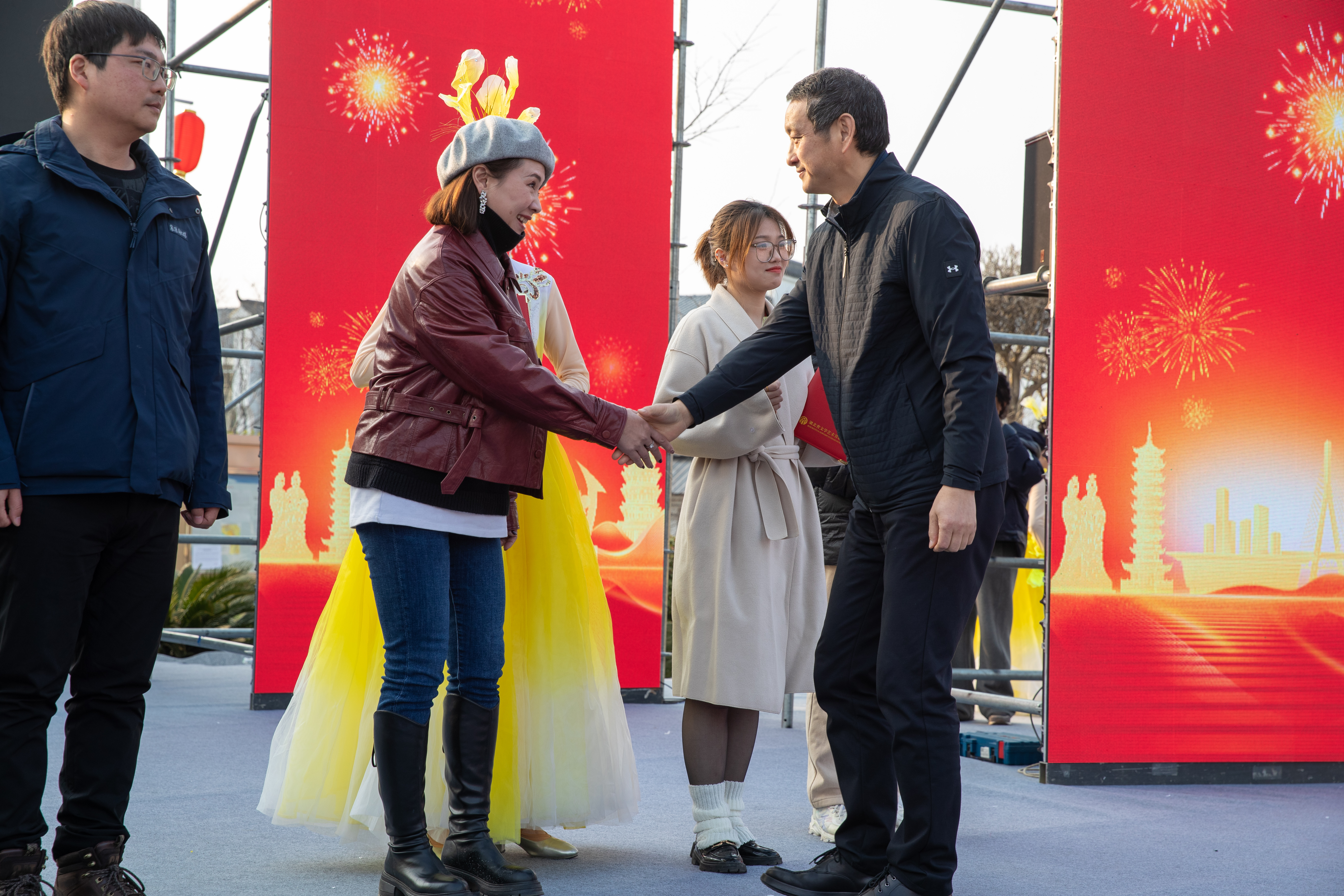 本次頒授儀式結(jié)合“建成支點(diǎn) 譜寫新篇”省文聯(lián)荊楚“紅色文藝輕騎兵”惠民演出展開,現(xiàn)場歡歌笑語,熱鬧火爆,吸引了近千名觀眾駐足觀看。
