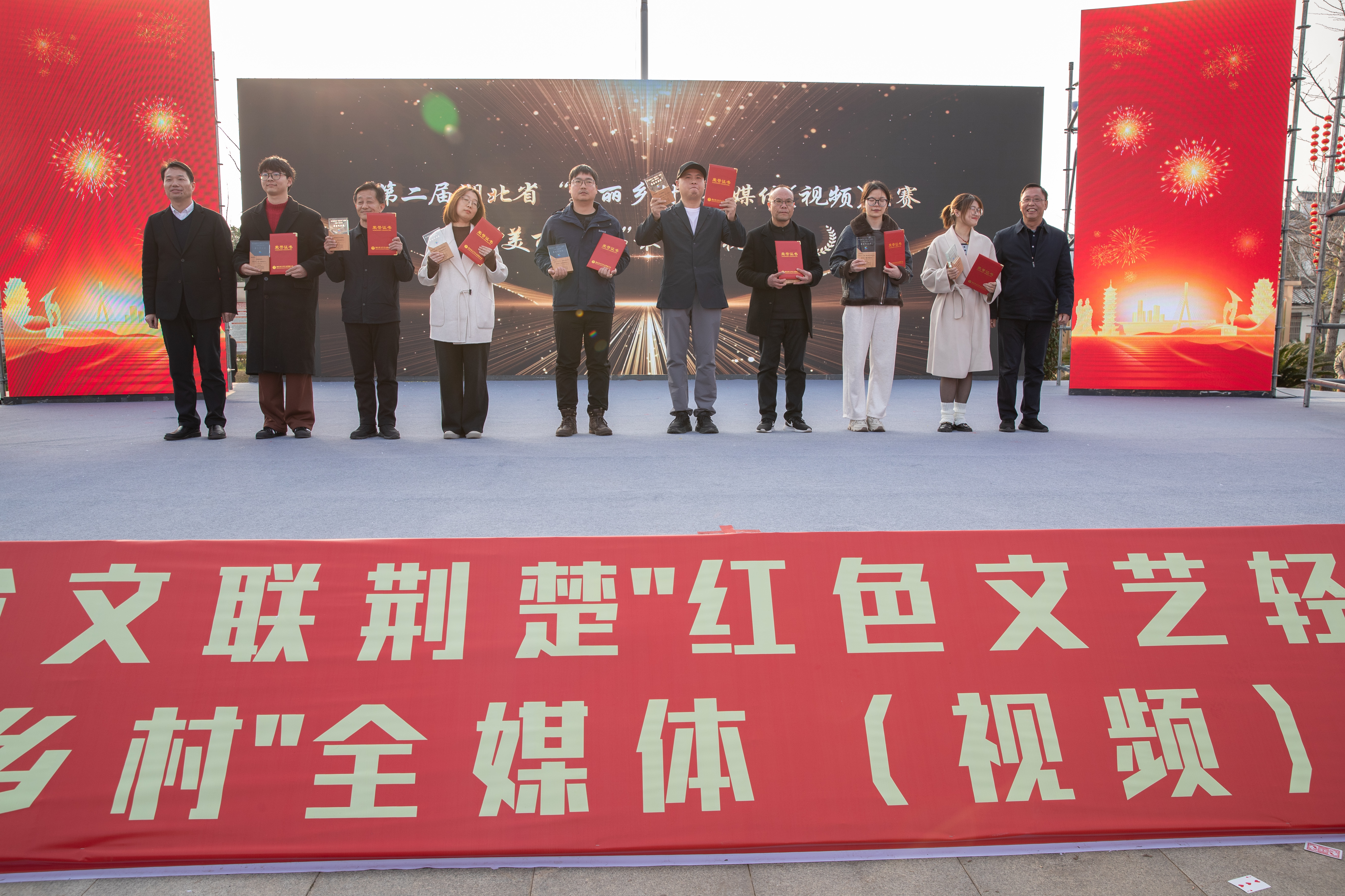 省委宣傳部常務(wù)副部長劉海軍,省文聯(lián)黨組書記、常務(wù)副主席張士軍,省文聯(lián)黨組成員、副主席王永平,咸寧市委常委、組織部部長、宣傳部部長徐小兵,嘉魚縣委書記王永,省廣電局宣傳處處長黃君,省電視藝術(shù)家協(xié)會副主席兼秘書長、一級導(dǎo)演郭光俊等領(lǐng)導(dǎo)出席本次活動,并為本次活動頒授十大最具人氣“美麗鄉(xiāng)村”、“最佳長視頻”、“最佳短視頻”獎項(xiàng)。
