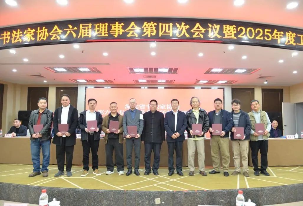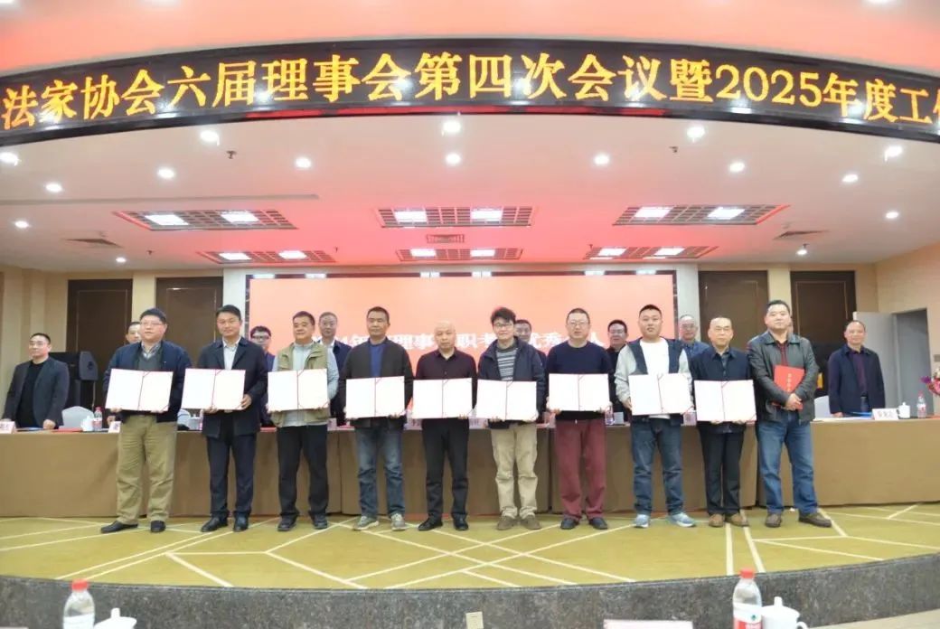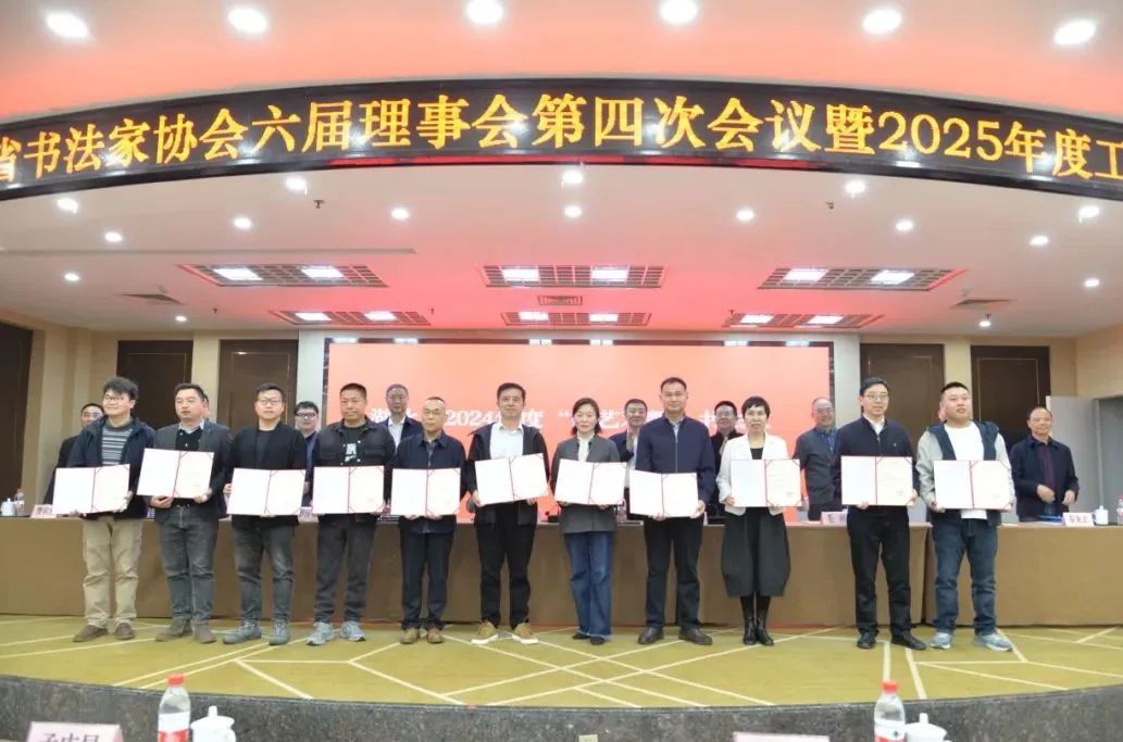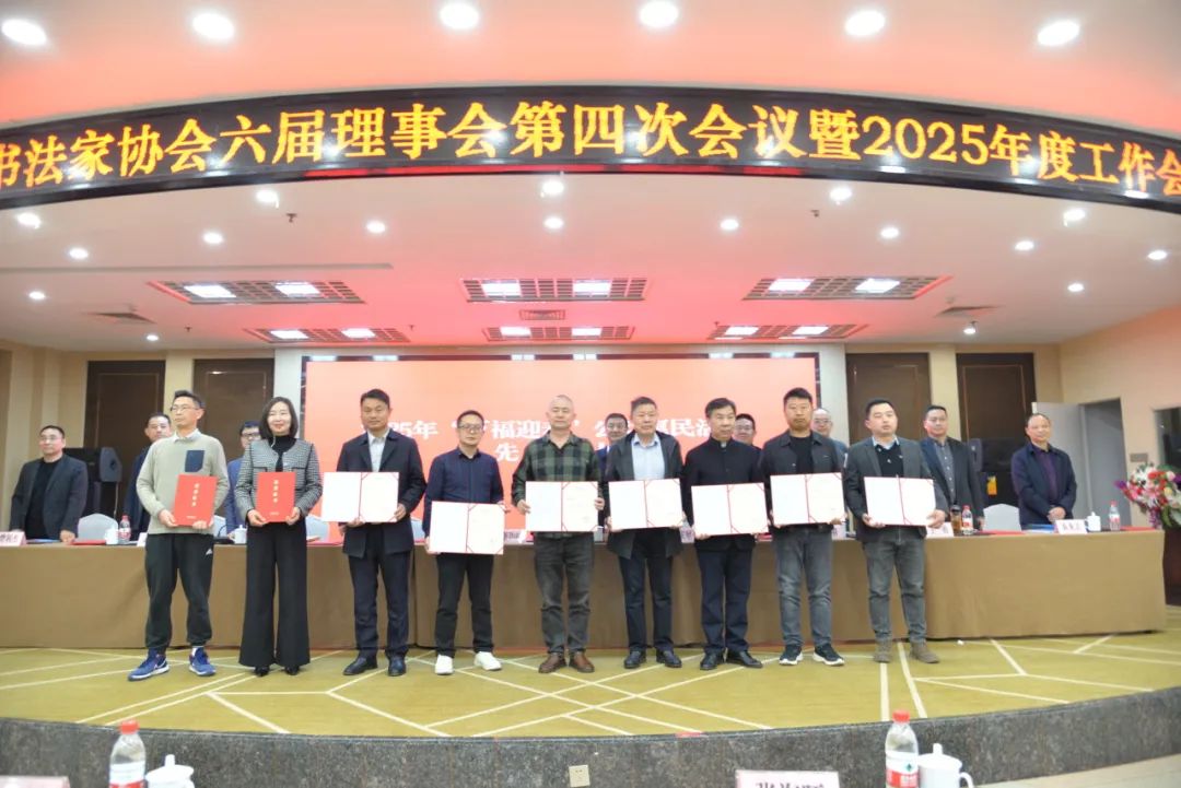 會(huì)議期間,對(duì)2025年“萬福迎春”公益惠民活動(dòng)先進(jìn)單位和先進(jìn)個(gè)人、湖北省書協(xié)理事履職考核優(yōu)秀個(gè)人、2024年“德藝雙馨”會(huì)員進(jìn)行了通報(bào)表揚(yáng)、頒發(fā)證書,并舉行了省書協(xié)第六屆專業(yè)委員會(huì)主任聘書頒發(fā)儀式。