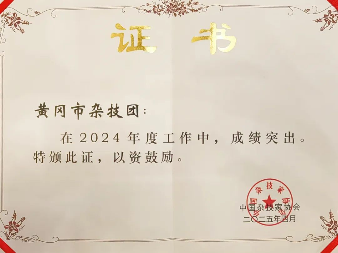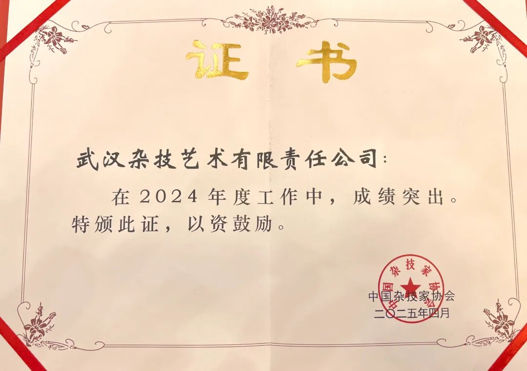 會(huì)上,通報(bào)了中國(guó)雜協(xié)2024年度工作成績(jī)突出的團(tuán)體會(huì)員單位和雜技院團(tuán)等。武漢雜技藝術(shù)有限責(zé)任公司、黃岡市雜技團(tuán)因2024年工作成績(jī)突出獲得先進(jìn)單位表彰。
