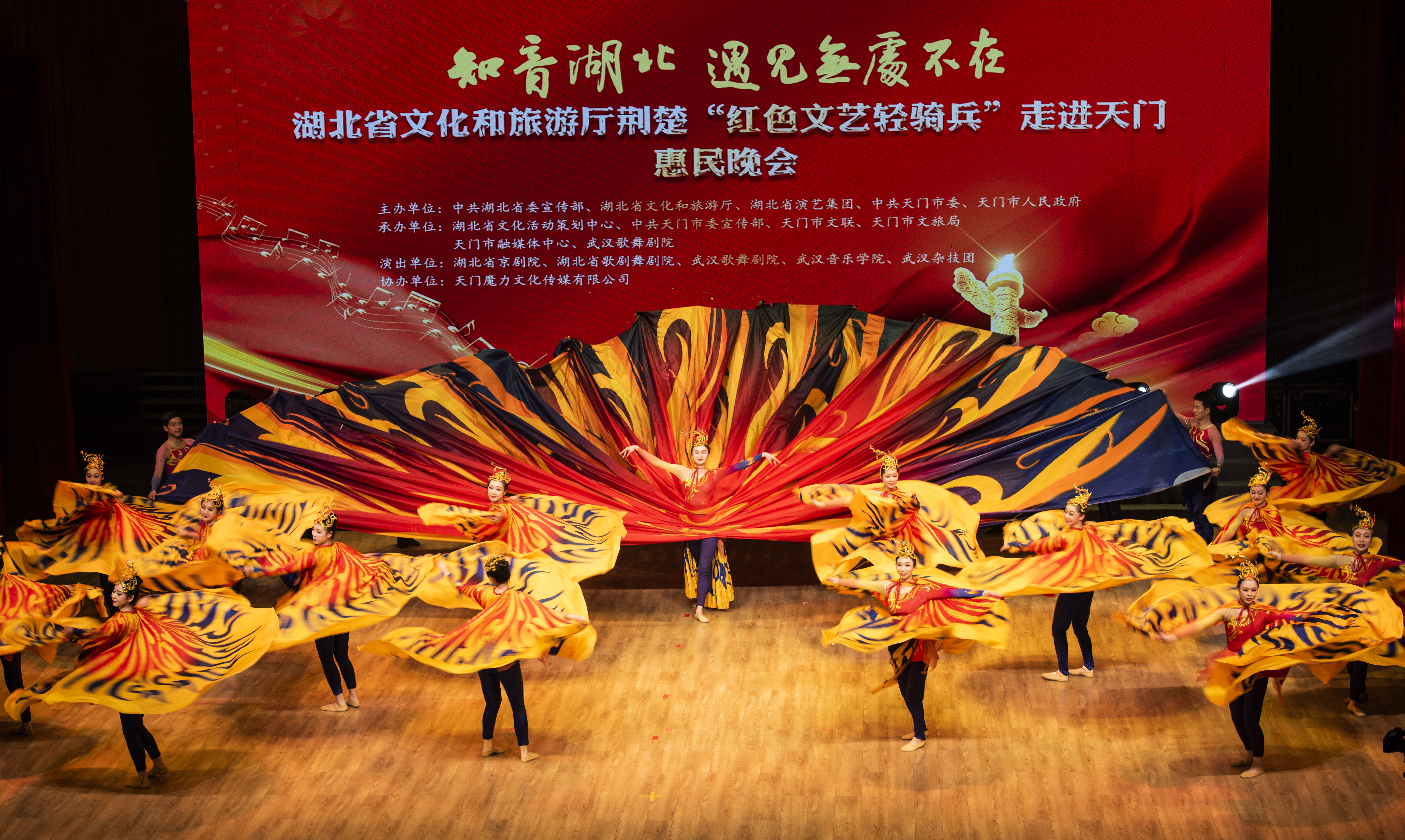 2月27日,湖北省荊楚“紅色文藝輕騎兵”惠民演出在天門劇院盛大開演?,F(xiàn)場1000余名觀眾、數(shù)萬名網(wǎng)友線上線下共享視聽盛宴。