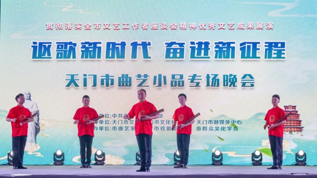 3.天門市戲劇家協(xié)會積極開展文化惠民活動,通過豐富多彩的演出形式,為城鄉(xiāng)居民送去高品質(zhì)的精神文化食糧。年初,協(xié)會在天門劇院舉辦"我們的中國夢"慶元旦迎新春文化惠民演出、湖北省荊楚"紅色文藝輕騎兵"惠民演出,為節(jié)日增添喜慶氛圍。五一期間,在天門劇院廣場推出"謳歌勞動美 建功新時代"勞動節(jié)專場演出,致敬勞動者。此外,協(xié)會還組織"謳歌新時代、奮進新征程"送戲下鄉(xiāng)活動,將精彩演出送到漁薪鎮(zhèn)謝場村等基層一線,讓群眾在家門口就能享受文化盛宴。