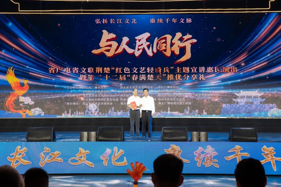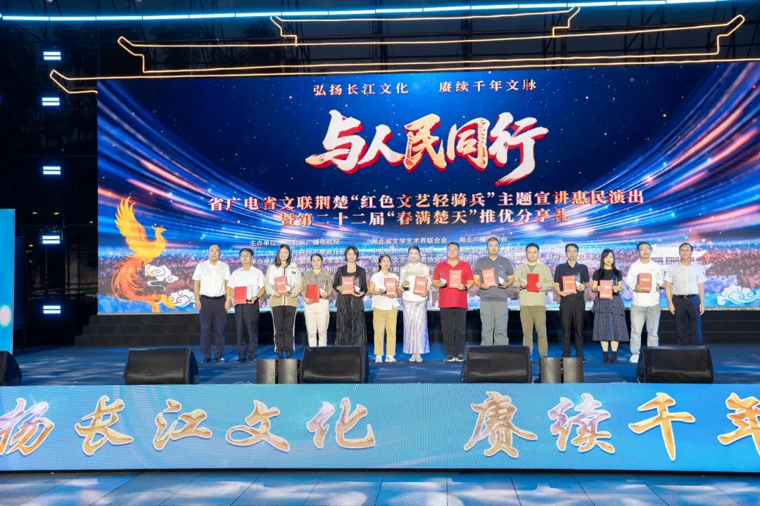 5月23日,是第十二個(gè)中國(guó)文藝志愿者服務(wù)日,“與人民同行 省廣電省文聯(lián) 荊楚‘紅色文藝輕騎兵’主題宣講惠民演出暨第二十二屆‘春滿楚天’推優(yōu)分享禮”在荊州市荊州區(qū)古城墻邊成功舉辦。