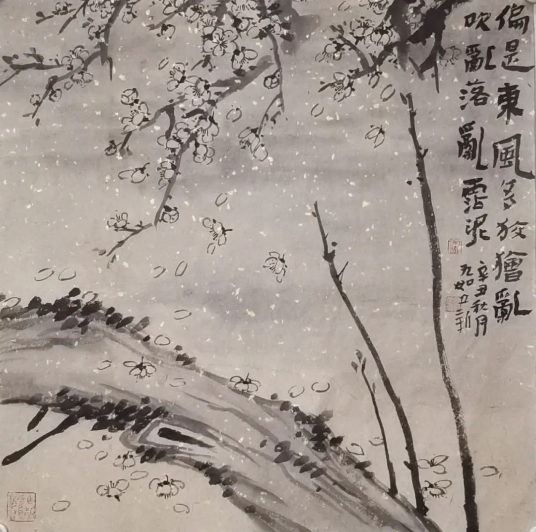 2022 壬寅 橫斜梅影古墻西 八九分花開已齊 偏是東風(fēng)多狡獪 亂吹亂落亂沾泥 金農(nóng) 落梅圖