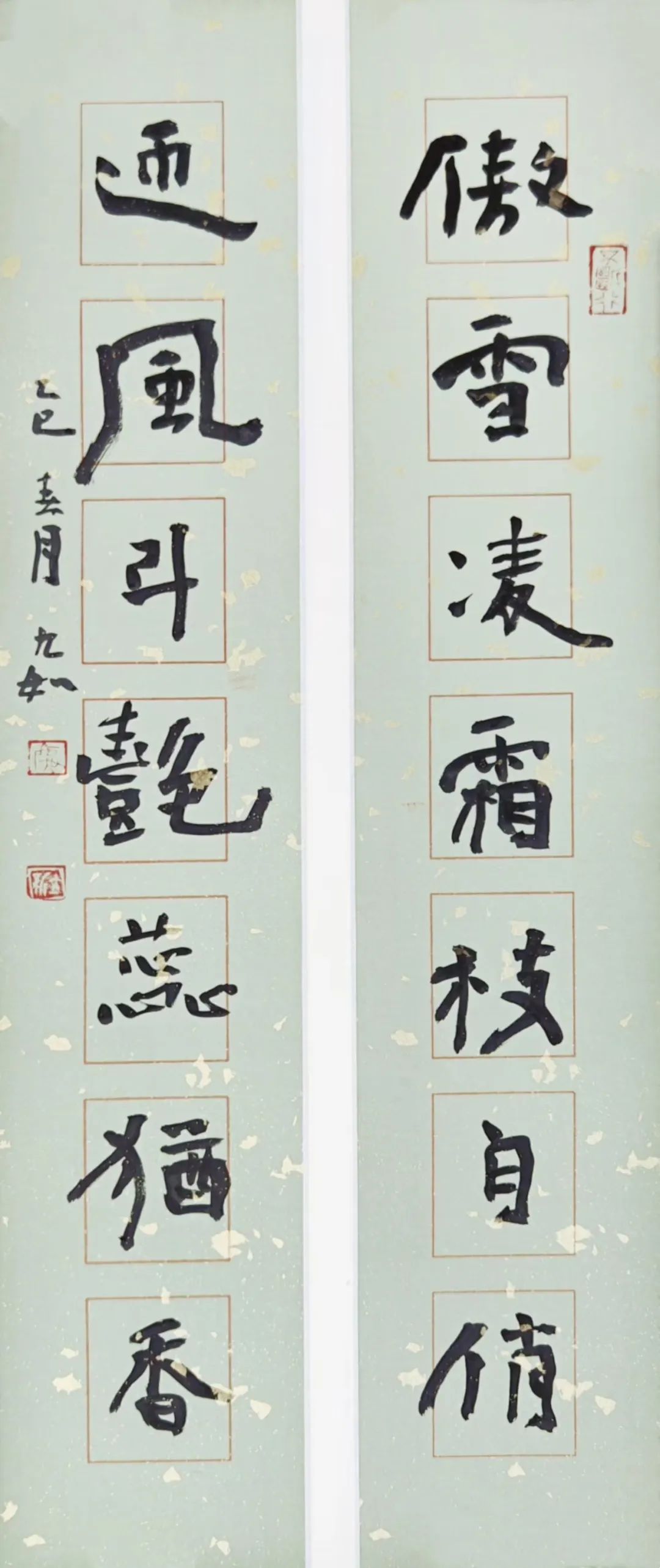 行楷對(duì)聯(lián) 雪凌霜枝自俏 迎風(fēng)斗艷蕊猶香 67cm*12cm* 2