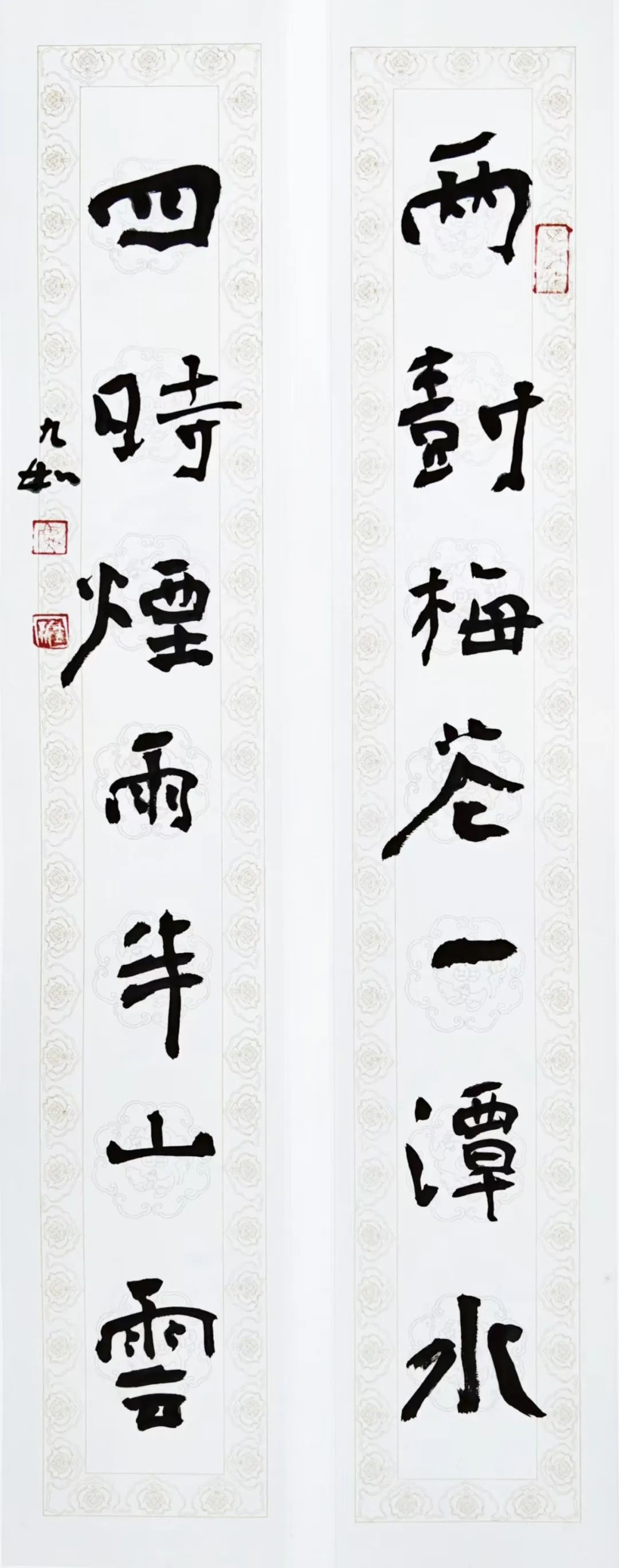 行楷對(duì)聯(lián) 兩樹梅花一潭水 四時(shí)煙雨半山雪 67cm*12cm* 2