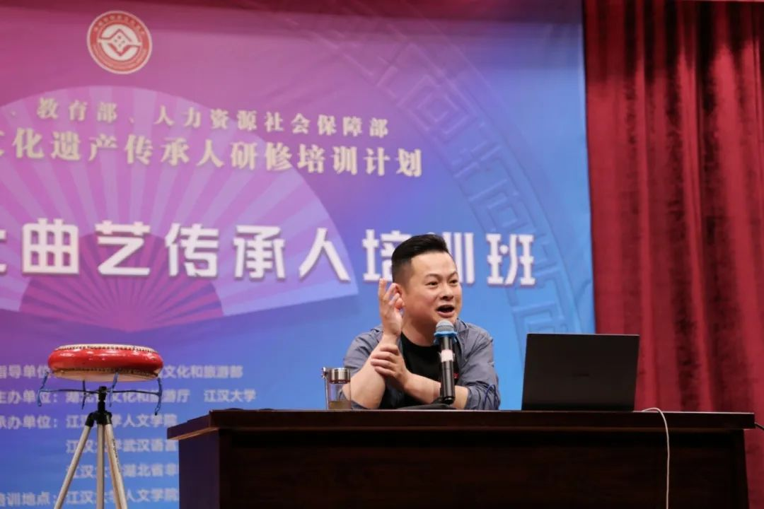 作為基層文化館的副館長,他一方面認為基層文化館在傳承非遺文化過程中承擔的就是承上啟下的作用。對上承接的是文化傳承與保護的使命,積極配合上級文化部門開展相關(guān)工作;對下肩負的是文化普及與推廣的責任。文化館面向廣大群眾,尤其是青少年等新一代群體,通過開展各類公益培訓課程、講座,以及組織曲藝進校園、進社區(qū)、進基層等活動,把湖北大鼓這樣的傳統(tǒng)藝術(shù),以通俗易懂、趣味十足的方式傳授給大眾,讓更多人了解、喜愛并參與到傳統(tǒng)藝術(shù)的學習中,從而培養(yǎng)新一代的文化傳承力量,實現(xiàn)文化在基層的生根發(fā)芽與傳承發(fā)展。