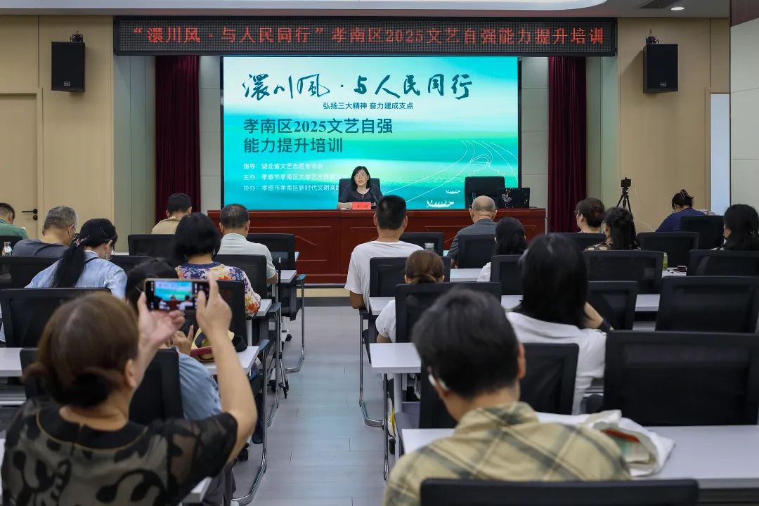6月6日至8日,由湖北省文藝志愿者協(xié)會指導(dǎo)、孝南區(qū)文聯(lián)主辦、孝南區(qū)新時代文明實踐中心協(xié)辦的 “澴川風(fēng)?與人民同行”孝南區(qū)2025文藝自強能力提升培訓(xùn)在孝南區(qū)新時代文明實踐中心成功舉辦。為期三天的培訓(xùn)設(shè)置了五大主題課程,吸引了全區(qū)線下200余人次文藝骨干及愛好者積極參與,線上同步直播學(xué)習(xí)瀏覽量超過2200人次。豐富的課程內(nèi)容與便捷的回看渠道,方便了大家學(xué)習(xí),也擴大了影響。