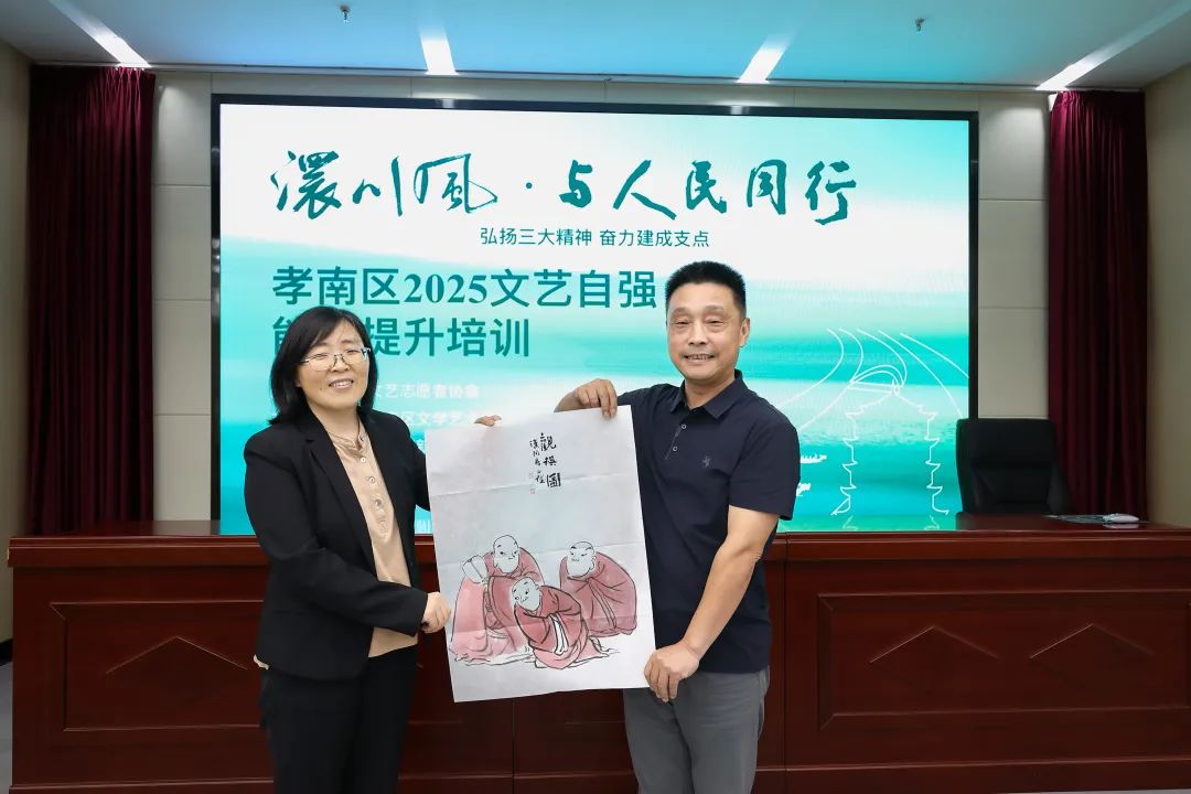 今日之“訓(xùn)”,是為了明日之“行”。我們期待大家能迅速將學(xué)習(xí)成果轉(zhuǎn)化為創(chuàng)作激情與實踐行動,在不久的將來,涌現(xiàn)出一批深刻反映“三大精神”、生動詮釋“至孝至誠 圖強圖新”、充分體現(xiàn)“文聯(lián)價值導(dǎo)向”、具有鮮明澴川底色的精品力作。