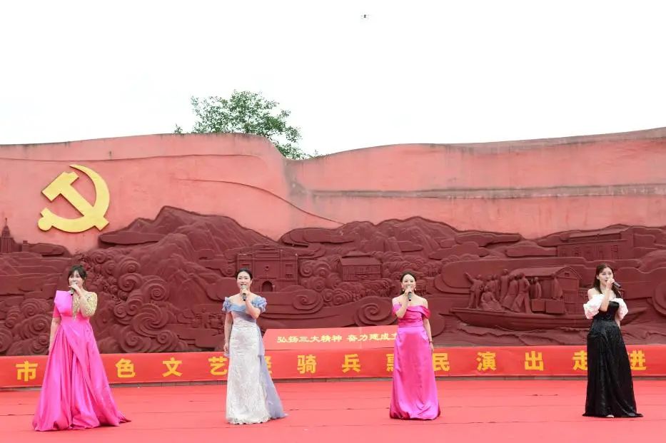 紅旗漫卷英雄地,三大精神映初心。6月15日上午,“弘揚(yáng)三大精神 奮力建成支點(diǎn)”黃岡市紅色文藝輕騎兵惠民演出在陳潭秋故居宣誓廣場(chǎng)舉行,為當(dāng)?shù)馗咐相l(xiāng)親獻(xiàn)上了一場(chǎng)精彩紛呈的文化盛宴。
