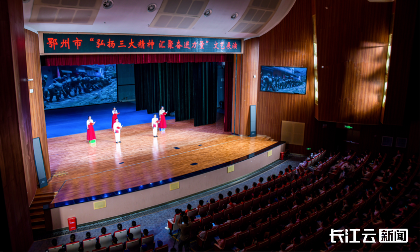 6月19日,“弘揚(yáng)三大精神 匯聚奮進(jìn)力量”文藝展演在鄂州大劇院璀璨啟幕。本次活動(dòng)通過歌舞、戲劇、朗誦等多種藝術(shù)形式,生動(dòng)詮釋了“三大精神”的深刻內(nèi)涵。來自鄂州市的醫(yī)護(hù)人員、消防隊(duì)員、退役軍人、勞動(dòng)模范、道德楷模等群體代表近千人共同聆聽了一場“三大精神”文藝“大思政課”。