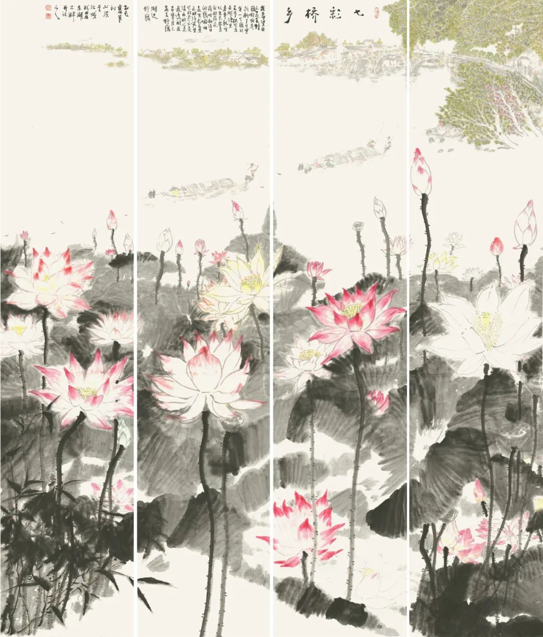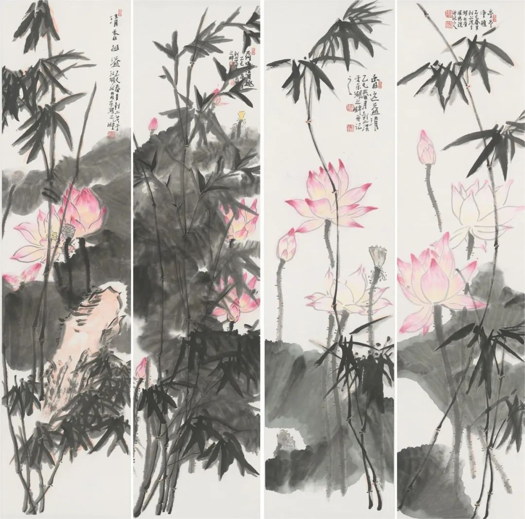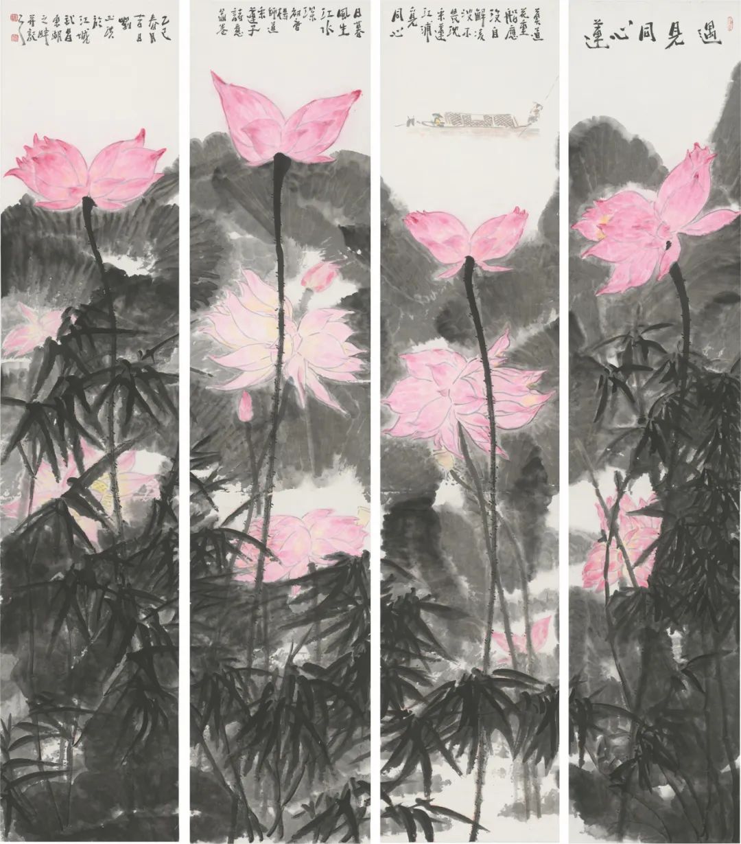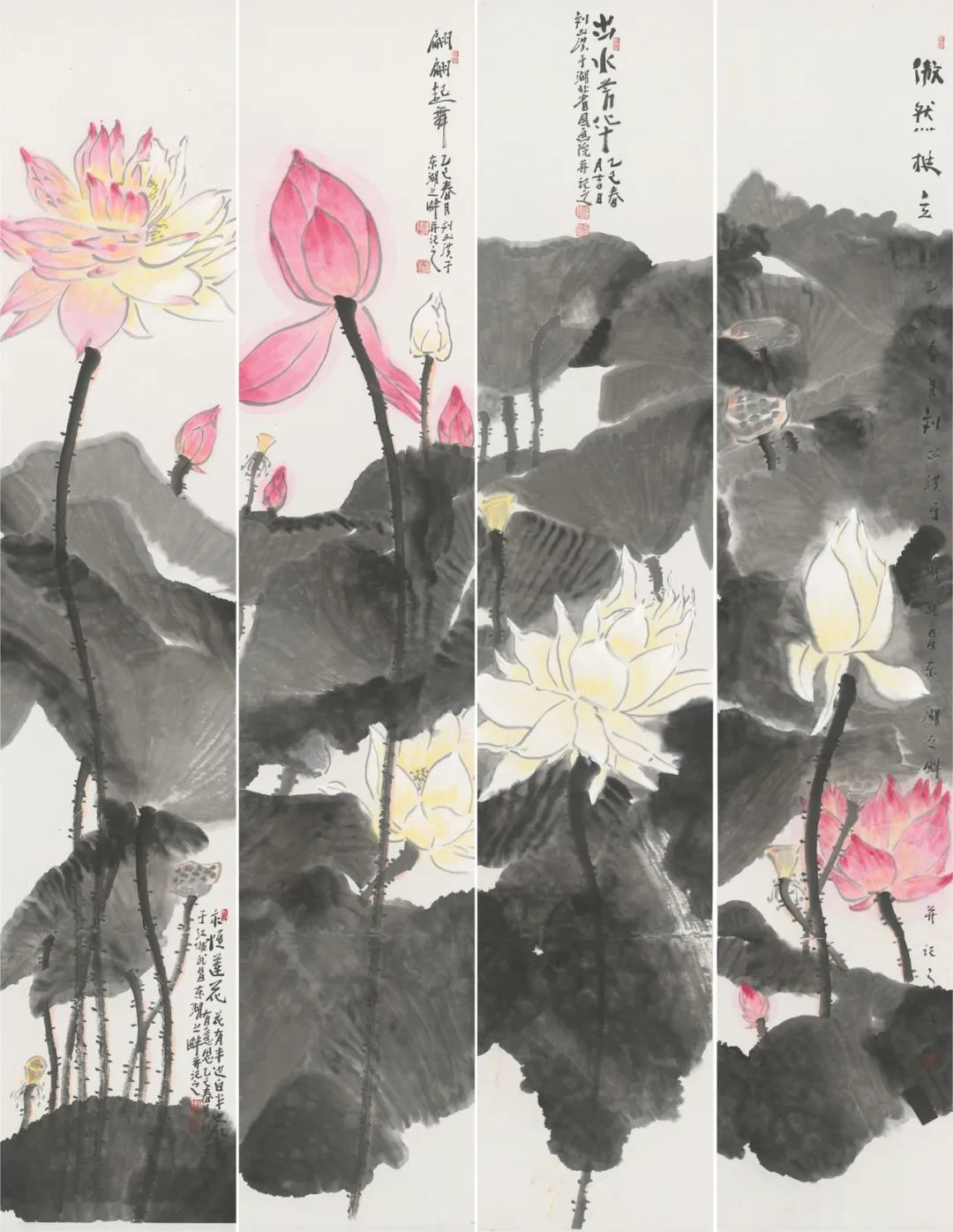 劉正洪 國畫 遇見同心蓮 235cm×53cm×4 2025年