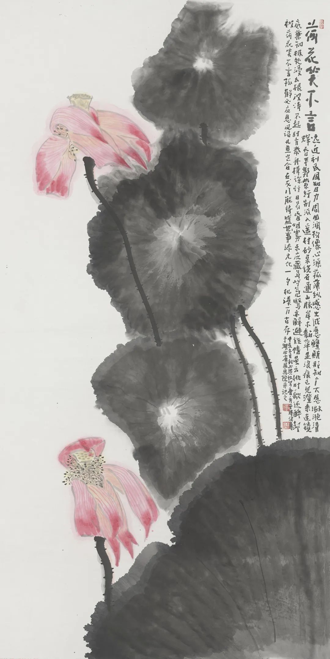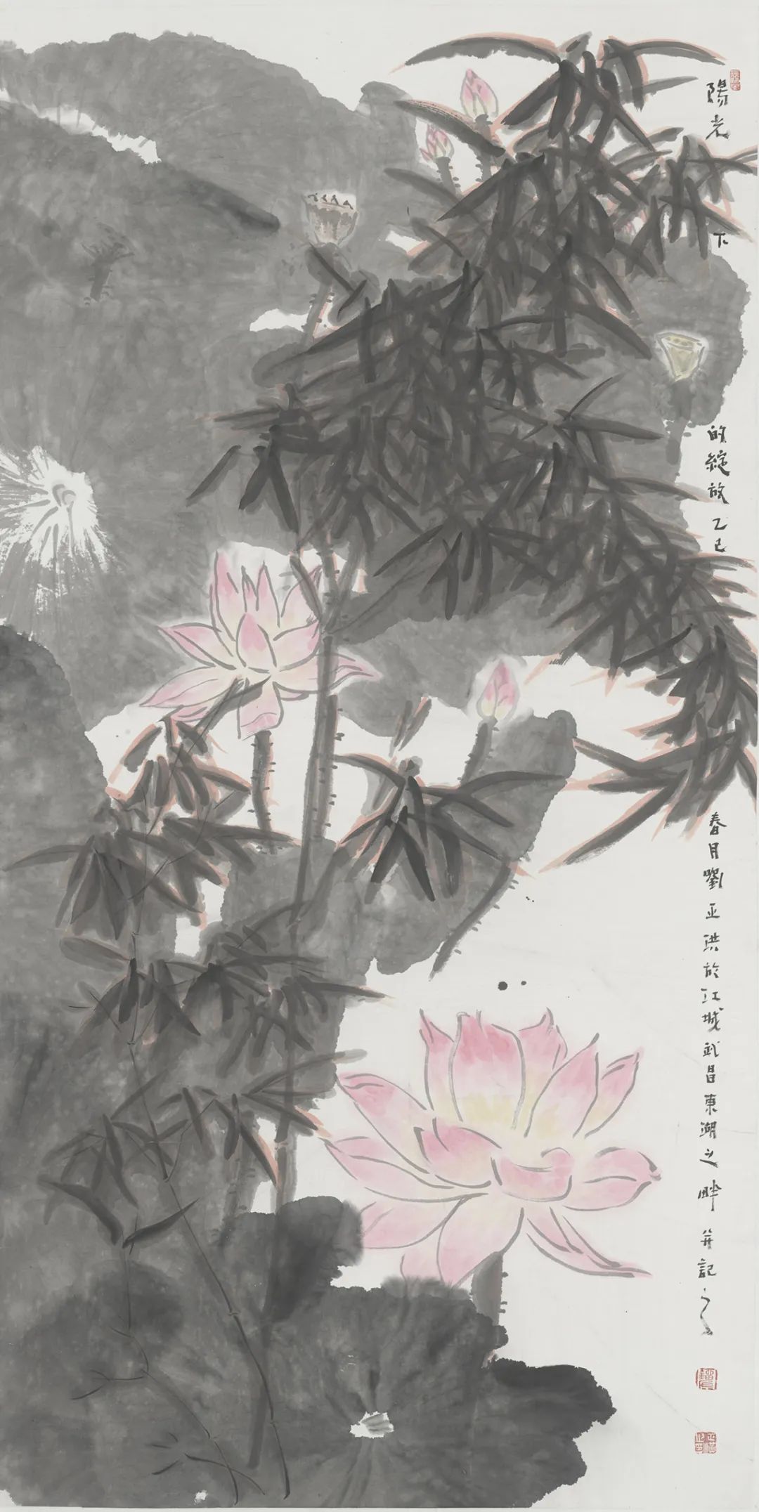 劉正洪 國畫 荷花笑不言 136cm×34cm 2025年